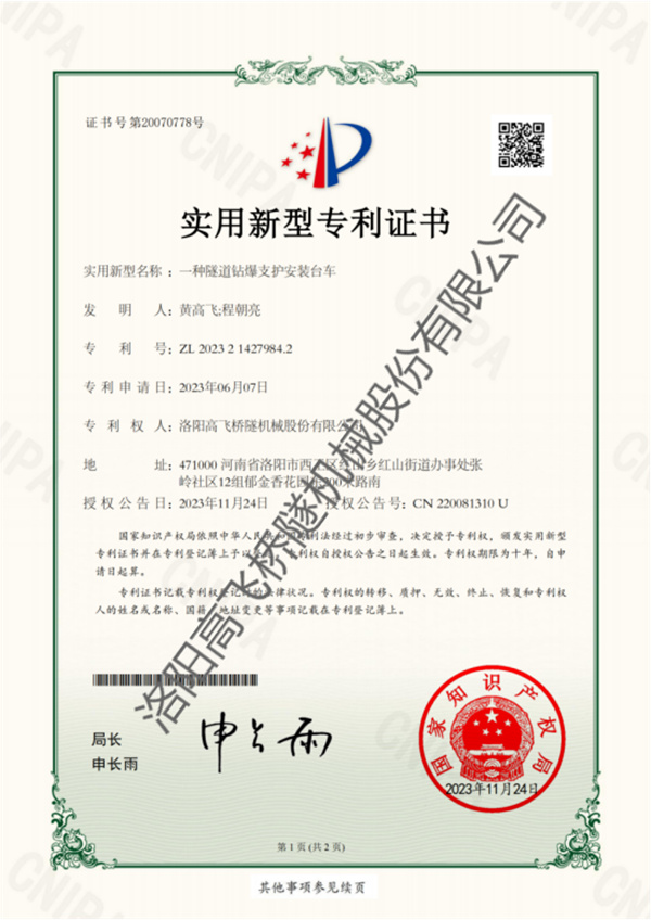 襯砌臺(tái)車(chē)專(zhuān) 利