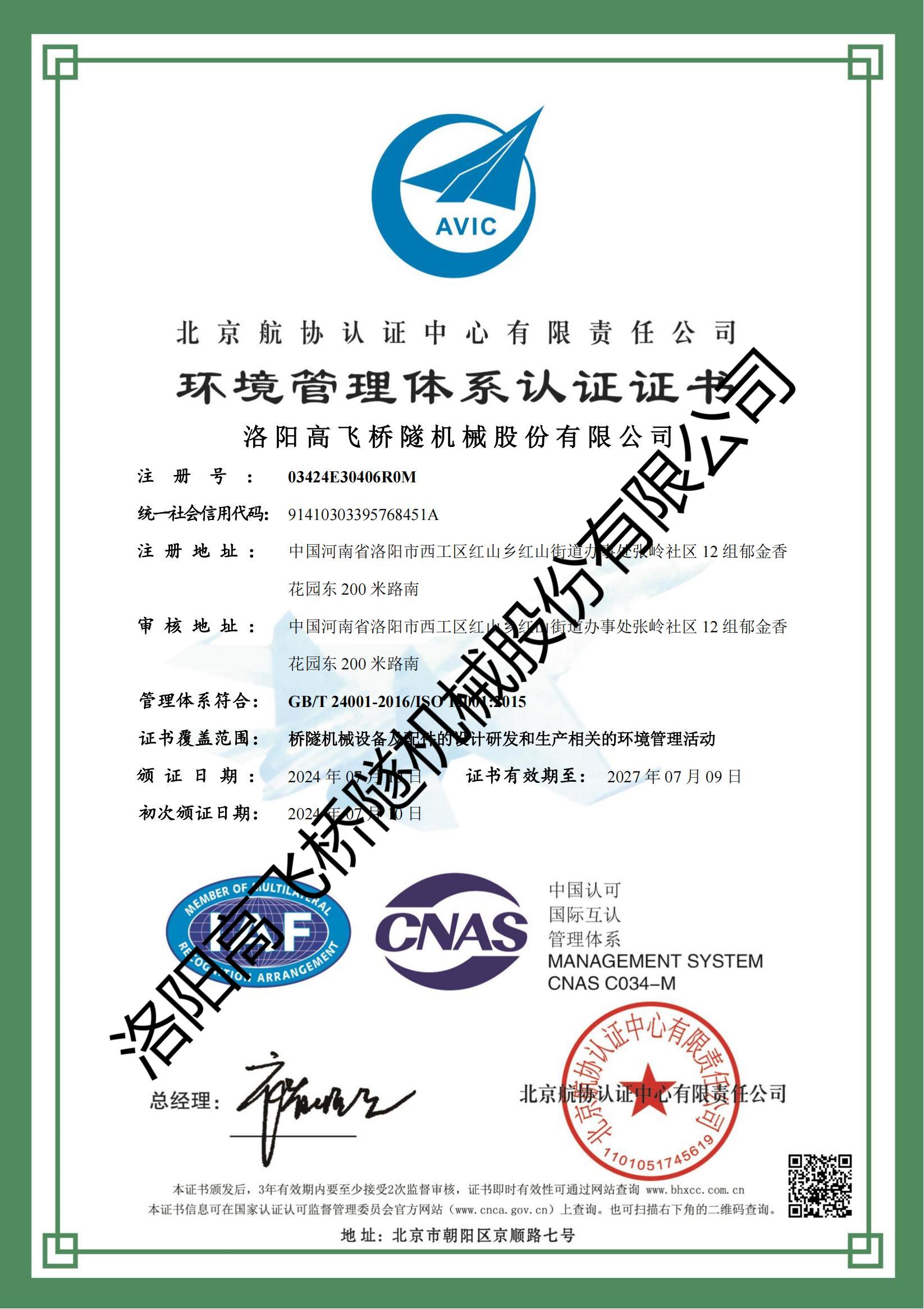 北京航協(xié)環(huán)境管理體系認(rèn)證證書(shū)