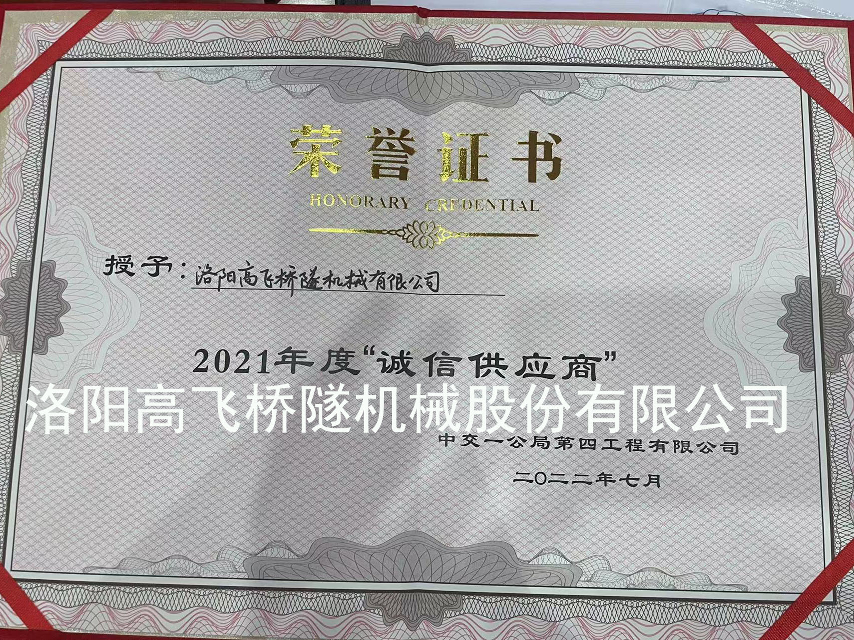 中交一公局2021年誠信供應商
