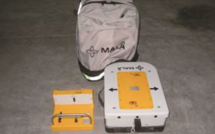 采用瑞典安伯格(Amberg)技術(shù)公司生產(chǎn)的TSP203PLUS隧道超前地質(zhì)預(yù)報系統(tǒng)(如圖3所示)、瑞典MALA公司生產(chǎn)的探地雷達(dá)(如圖4所示)和電腦三臂鑿巖臺車(如圖5所示)進(jìn)行超前地質(zhì)預(yù)報工作,采用3SNS-A柱塞式注漿泵(如圖6所示)進(jìn)行注漿作業(yè)。