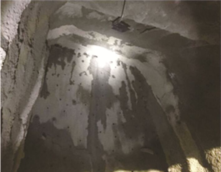 錨桿采用三臂鑿巖臺車或錨桿鉆注體機(jī)施作,噴射混凝土采用濕噴機(jī)械手施作,型鋼鋼架采用自行式液壓拱架安裝臺車施作,已施作錨桿的注漿飽滿度采用LX-10M型錨桿錨固質(zhì)量檢測儀進(jìn)行檢測。