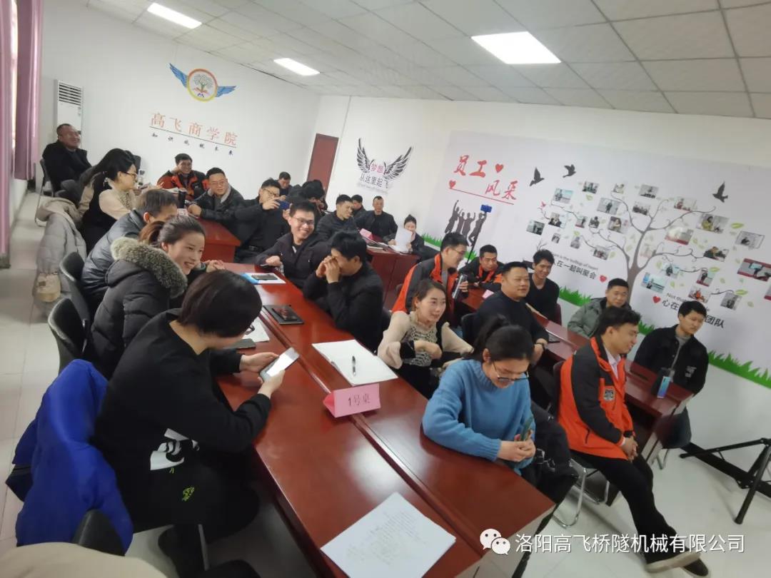 2021年01月29日,白云飄飄,晴空萬(wàn)里。經(jīng)過(guò)兩個(gè)月的教習(xí),洛陽(yáng)高飛橋隧機(jī)械有限公司——高飛商學(xué)院首期培訓(xùn)圓滿結(jié)束。授課講師和學(xué)員歡聚一堂,重溫了學(xué)院宗旨,辦學(xué)理念和院風(fēng)院訓(xùn),回顧了課程內(nèi)容,肯定了教學(xué)成績(jī),達(dá)成了預(yù)期目標(biāo),收到了良好效果,是高飛橋隧商學(xué)院教學(xué)的收官。