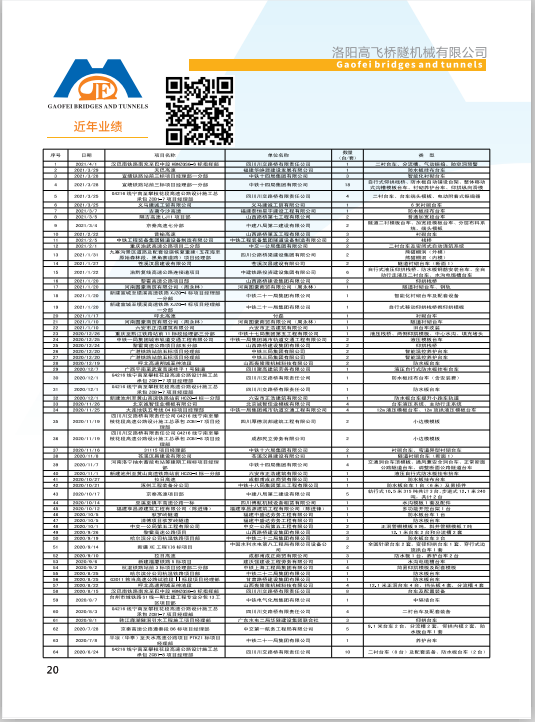 高飛公司多年來(lái)專注于軍工項(xiàng)目工程、鐵路工程(含客運(yùn)專線)、公路工程、城市軌道交通、水利水電工程、市政工程等施工項(xiàng)目的隧道、橋梁等多個(gè)領(lǐng)域,并可根據(jù)客戶需要設(shè)計(jì)、制造、異型定制等專需產(chǎn)品,先后和中國(guó)中鐵、中國(guó)鐵建、中國(guó)電建、中國(guó)交建、中國(guó)水利水電、中鐵裝備、中治集團(tuán)、葛洲壩集團(tuán)等成為戰(zhàn)略合作伙伴。