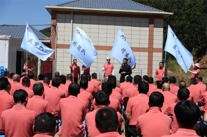 全體員工在教練帶領(lǐng)下,到達(dá)紅色基地培訓(xùn)中心,舉行了隆重的拓展開營儀式。