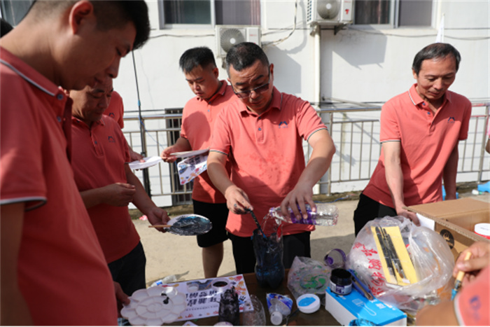 在激烈的團(tuán)隊(duì)競賽后,活動(dòng)來到共繪藍(lán)圖環(huán)節(jié),8個(gè)小隊(duì)分工協(xié)作,在納斯卡巨畫上描繪了“十年兼程,筑夢前行”的活動(dòng)主題圖案。