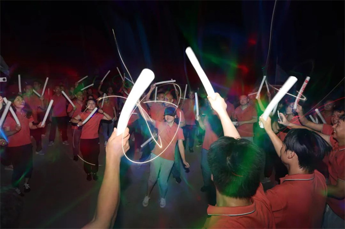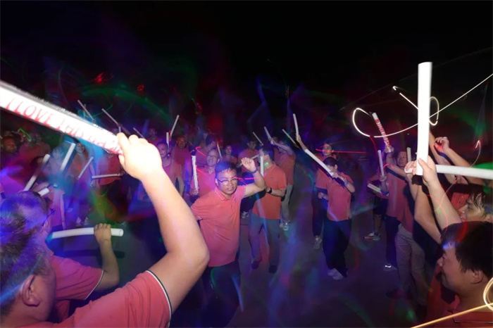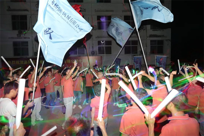 晚上的篝火晚會(huì),公司三位領(lǐng)導(dǎo)共切高飛股份十周年生日蛋糕,伴隨著歡快的生日歌及100發(fā)加特林的同時(shí)燃放,點(diǎn)燃了整場晚會(huì)。激情的音樂,跳動(dòng)的旋律,使得大家都忍不住的律動(dòng)起來,共同慶祝了這個(gè)美好的時(shí)刻。